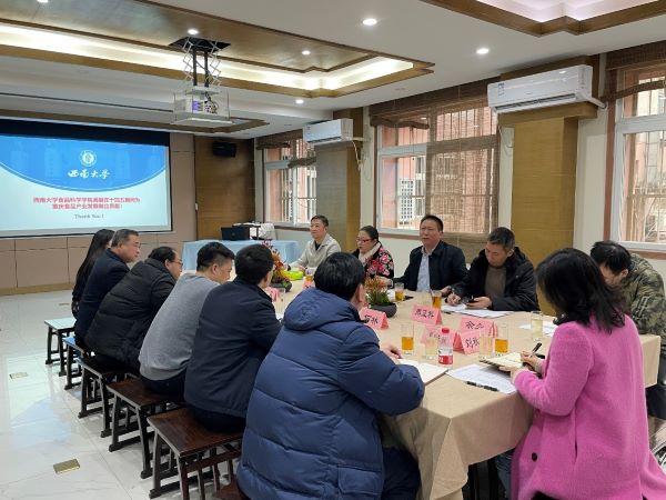 2月3日,重庆市科技局副局长许志鹏、农村科技处处长卞雨昕、副处长张磊、调研员周正科等一行5人前来我校并对beat365中国唯一官网“十四五”科技发展规划进行专题调研。西南大学科技处处长胡昌华,副处长何林、食品科学学院党委书记吴俊平、院长张宇昊、党委副书记刘秋艳、副院长夏杨毅、曾亮出席本次调研会议。会议由张宇昊院长主持。