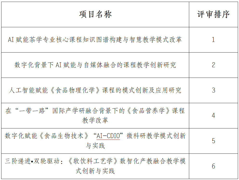 根据西南大学“关于组织开展2026年教改项目立项申报工作的通知”,经学院组织专家评审,现将评审排序结果公示如下: