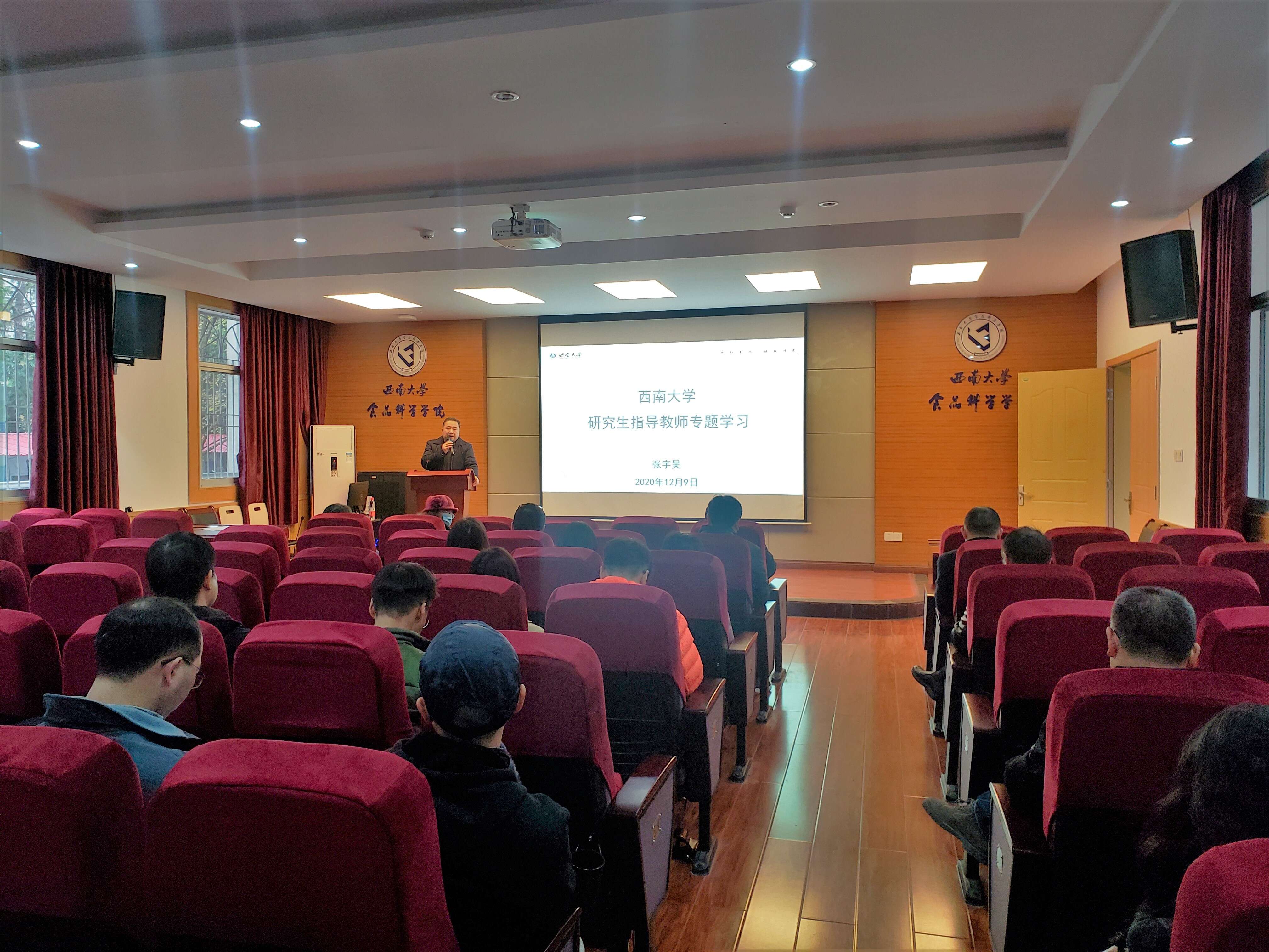 为深入贯彻习近平总书记关于研究生教育工作的重要指示精神,切实提高研究生指导教师队伍水平,强化导师立德树人职责,提高人才培养质量。2020年12月9日,食品科学学院组织全体校内外研究生指导教师开展了专题学习。此次专题学习会由吴俊平书记主持,张宇昊院长主讲,食品科学学院全体校内外研究生指导教师参会。