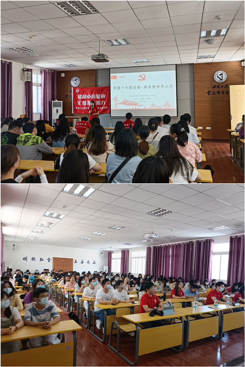 为深入学习贯彻习近平新时代中国特色社会主义思想和党的十九届六中全会精神,以实际行动迎接党的二十大胜利召开,2022年5月5日下午3点,西南大学研究生党史宣讲团在食品科学学院39教312开展了以“讲述中国精神·汇聚青年伟力”为主题的党史宣讲活动。学院100多名研究生党员及入党积极分子参加学习。