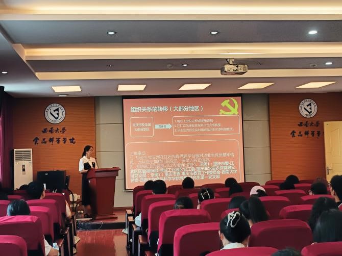 组织员周芳老师为毕业生党员做党员组织关系转接培训,详细讲解了组织关系转移工作的相关规定、基本流程和注意事项,细致解答了在场党员的困惑。