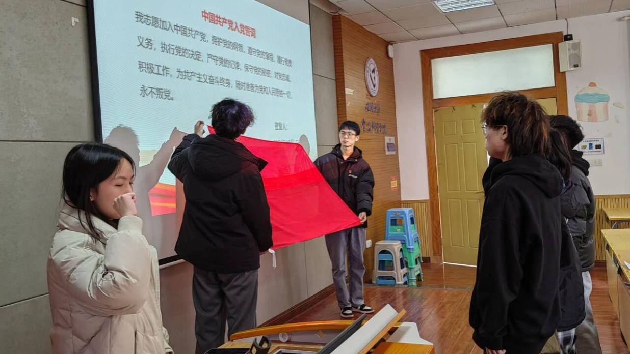 为加强理论武装、增强党性修养,2024年12月27日,本科生第二党支部开展“学习贯彻党的二十届三中全会精神”主题党日活动暨预备党员入党宣誓仪式。学院纪委委员邓丽莉、本科生第二党支部书记方令及支部全体党员同志共同参会。