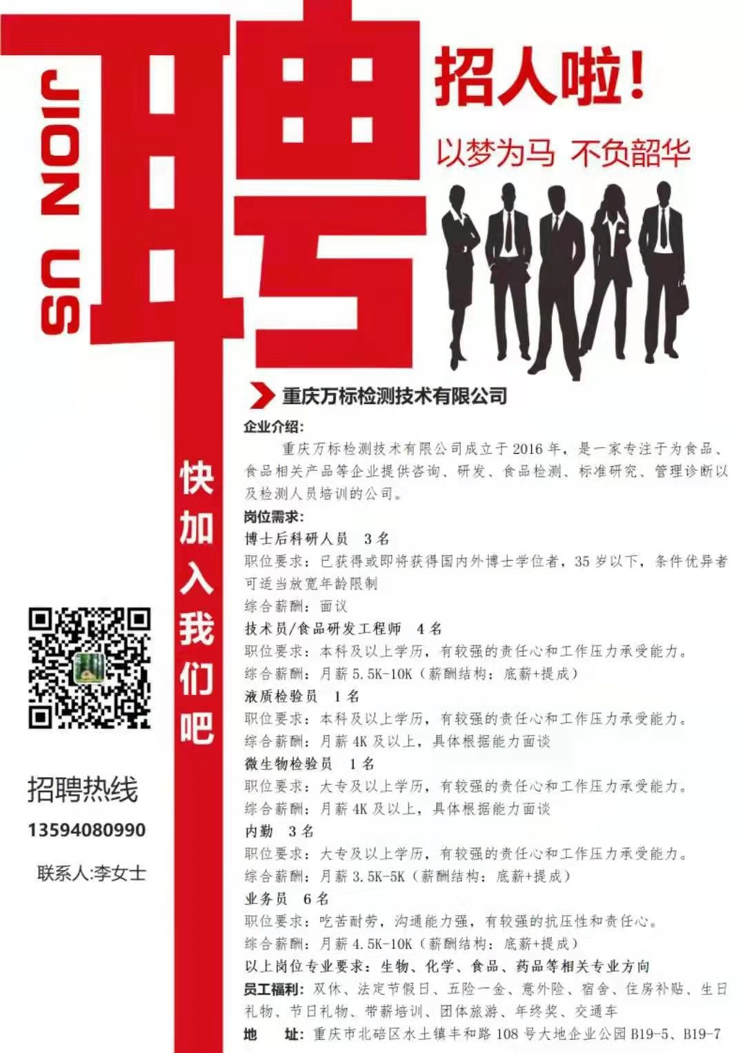 重庆万标检测技术有限公司招聘啦