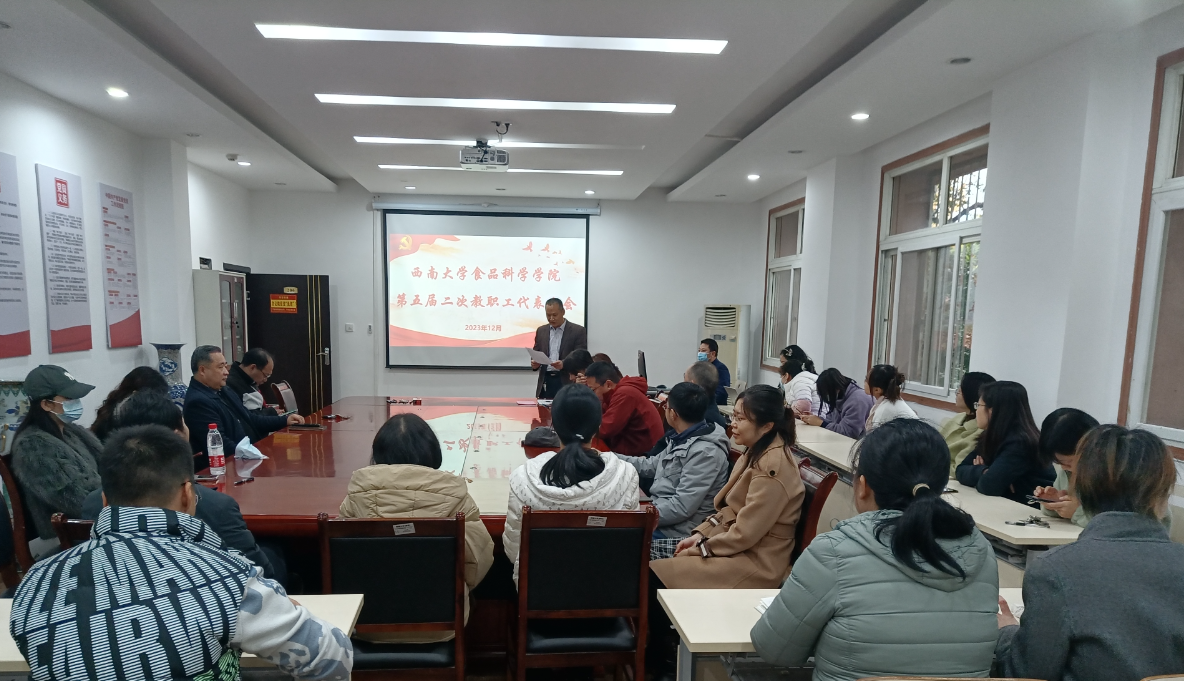 食品科学学院第五届二次教职工代表大会于2023年12月4日在40教学楼206会议室召开,全院教职工代表30人,实到25人,符合教代会开会的人数要求。本次会议的主要议题是讨论审议《食品科学学院2023年岗位聘用实施方案》。