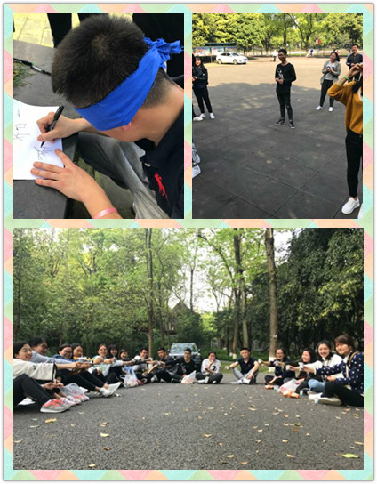 秉承“春光无限,食之有味”的活动主题,本次活动分四队进行,共设置三个任务地点,每个地点各队需要两两对抗,完成相应的游戏。活动从考验队员默契程度的“寻手”游戏展开,随后各队按路线达到各个任务点,相应完成“零食接力”、“拍照比手势”、“吸管接力”、“蒙眼作画”、“站报纸”等游戏环节,并展示“我们好像在哪儿见过”游戏的照片,最后,根据总分统计结果,按名次分发奖品。活动过程中队员们密切配合,欢声四起。“拍照比手势”的丑照引起队员们捧腹大笑,“蒙眼作画”游戏环节更是出现了不少灵魂画手,“站报纸”环节队员们紧紧支持对方,互相维持重心。
