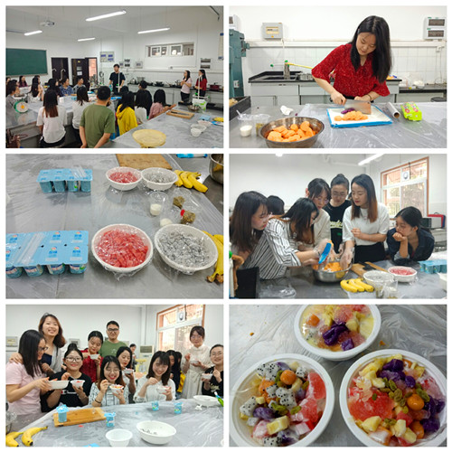 感官评价结束后,大家来到了40教223实验室进行芋圆奶茶的DIY实验。在进行分组及简单教学后,每组同学选择好自己组的实验材料并开始制作芋圆,经过多次的探讨和摸索,同学们都制作出了口感好的芋圆,并根据自己的喜好又加入了各种水果、酸奶和坚果,制作出了属于自己的夏日圣品。在DIY过程中,同学们互相交流制作经验、分享DIY成品,现场氛围十分融洽。本次交流学习活动温馨热闹的氛围中落下帷幕。