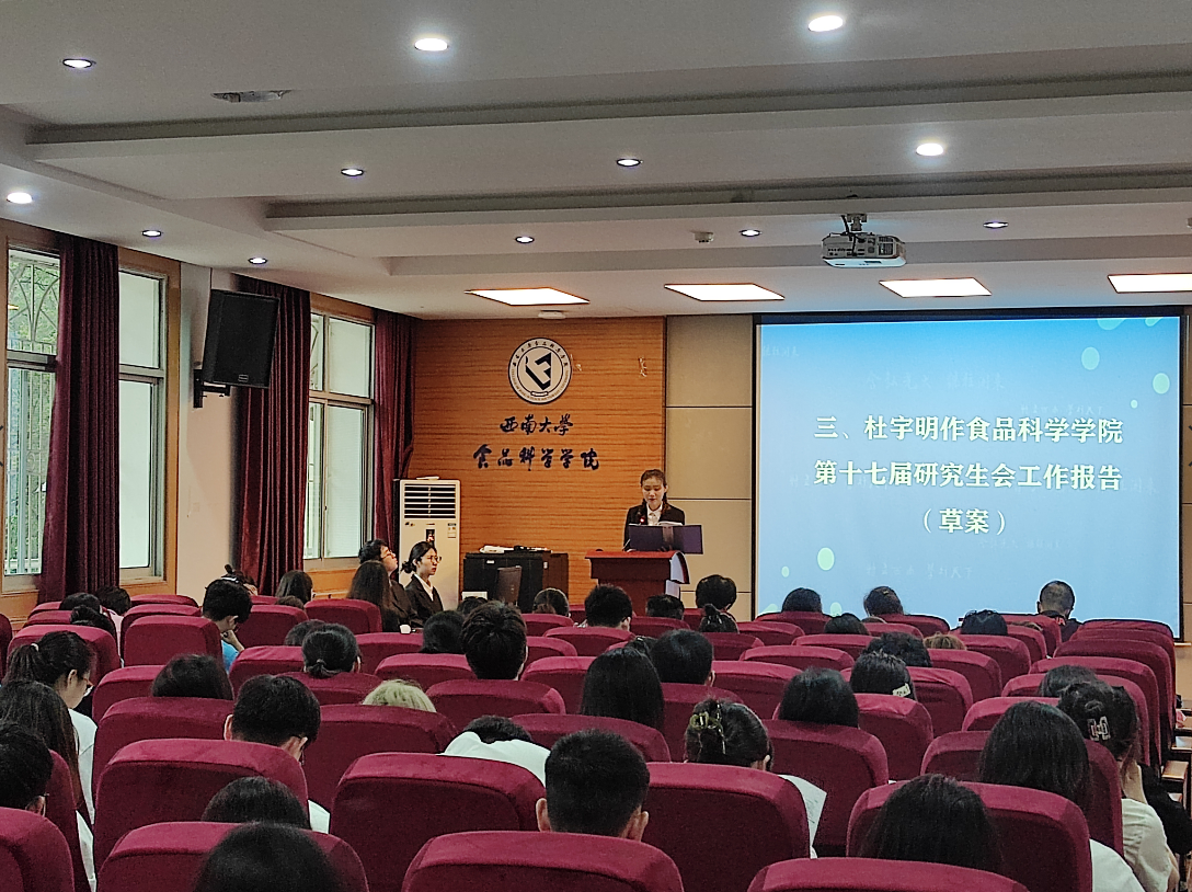 院研究生会执行主席杜明宇、院团委副书记王慧丽分别作食品科学学院第十七届研究生会、第十八届团委、学生会述职报告,向大会代表汇报过去一年院研究生会和院团委、学生会相关工作情况。