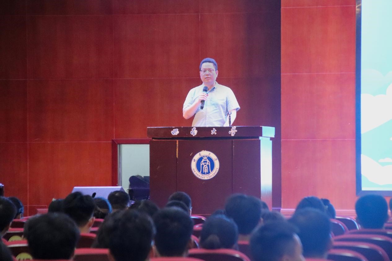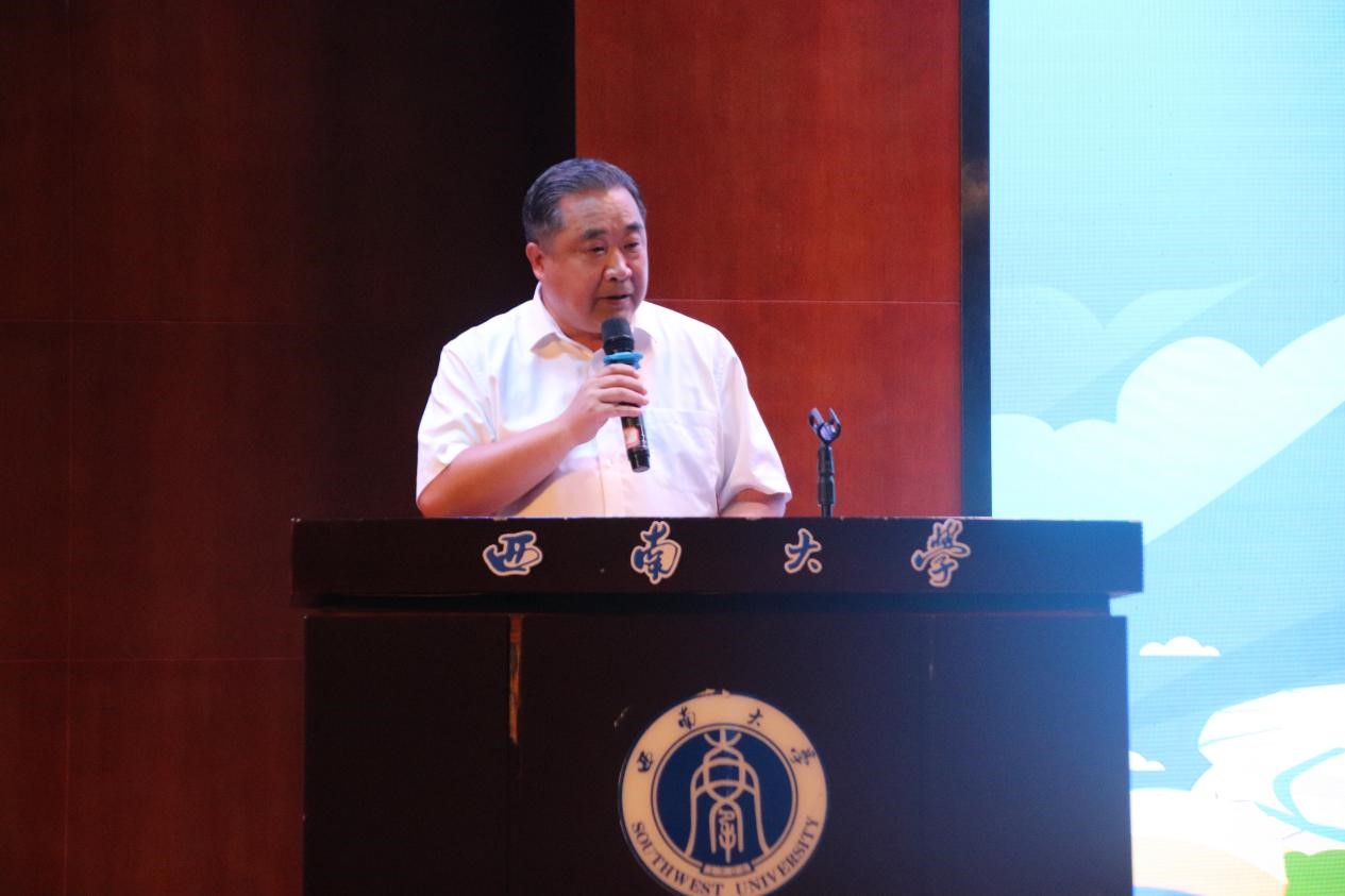 紧接着,在校生代表——2022级研究生代表梁明同学上台发言。梁明同学以“吃苦”二字为核心,和新生分享了大学生活、学习、学生工作的体会,并表达了对新同学的美好祝愿。随后研究生新生代表邓吉斯和本科生新生代表夏颢溪分别分享了自己初来西大的感受和对未来的展望。