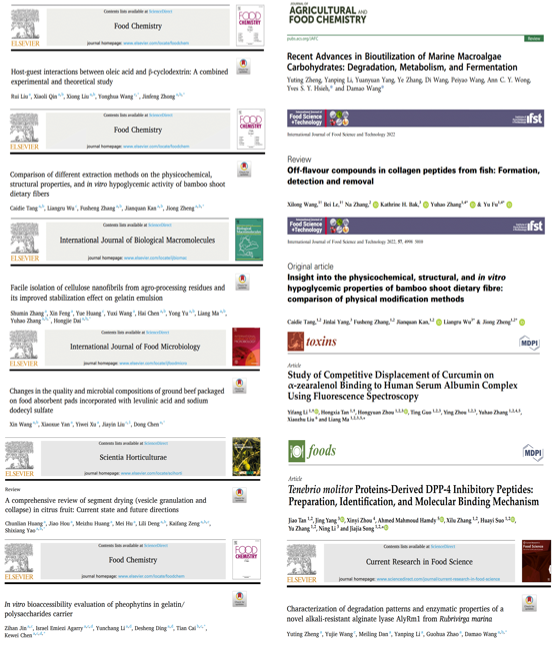 “百超”创新实验班的学生秉承着“勤奋好思、勇探未知”的科研精神,在科研上屡创佳绩。至今,已有12名同学在中外知名期刊,如《Food Chemistry》、《Journal of Agricultural and Food Chemistry》、《International Journal of Food Science and Technology》、《International Journal of Biological Macromolecules》、《International Journal of Food Microbiology》、《Toxins》、《Current research in food science》、《Scientia Horticulturae》等接连发表22篇学术论文,其中包括12篇SCI论文(8篇一区SCI),10篇中文核心论文。论文的成功发表,既是食品科学学院重视本科 创新人才培养模式的成果,也是对学生科研能力的肯定。