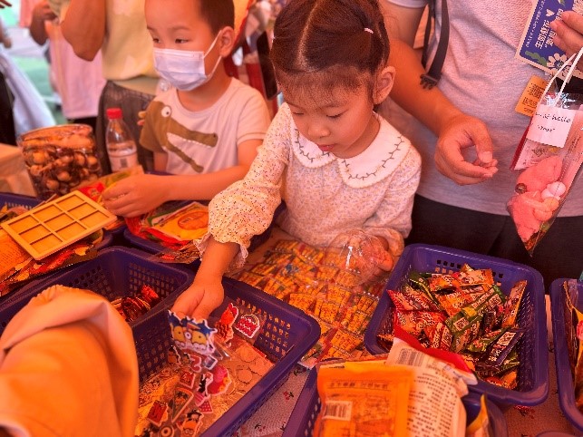 “食”光小卖部区域准备了很多童年小零食,并设置了三个别出心裁的小游戏:溜溜球、吹泡泡胶、下井字棋。同学们可通过做游戏的方式赢取小零食、集章,旨在以童年游戏的方式唤醒同学们美好的记忆,让同学们发现自我,了解自我,增强挑战自我和敢于尝试的勇气,进而能够站在更高的视角正确看待现在或未来将要面临的挑战。