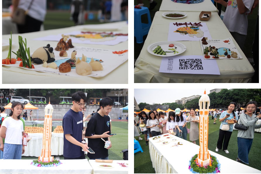 食品博览会在游戏美食区为食客准备了夫妻肺片、钵钵鸡、辣子鸡、火锅串串、麻辣鸡丝、冰粉冰汤圆等颇具川渝特色的美食小吃;同时,还结合学院专业特色,设置了“川菜渝味”特色食品展区。在展出往届食博会中均亮相的益生菌—植物乳杆菌S58的基础上,还为同学们准备了3D打印鱼糜等学院科研成果转化产品。此外,食品院学生还精心制作火锅底料创意蛋糕、准备了666个DIY小蛋糕,让各路食客在食博会玩得更尽兴。