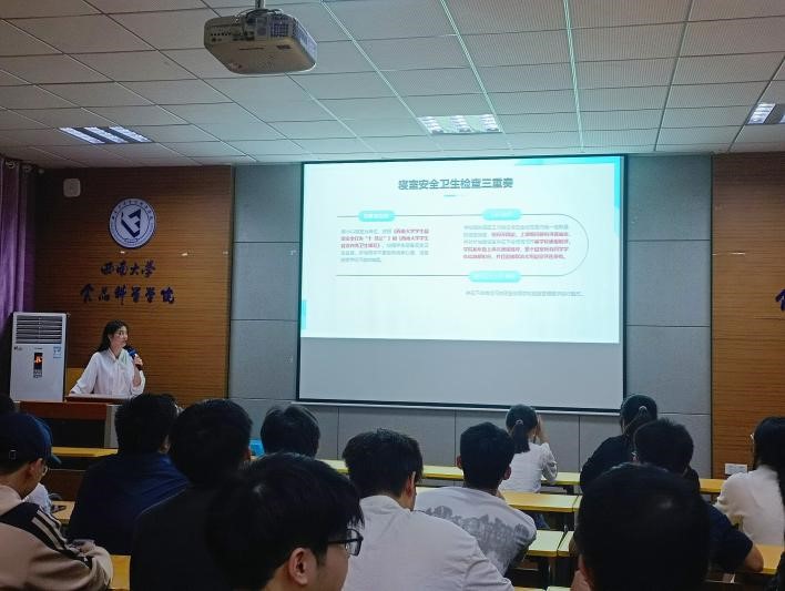 为强化寝室安全卫生意识,营造温馨、整洁、文明、有序的寝室环境,将学生寝室安全管理落到实处,2023年5月26日晚上8点,食品科学学院2021级寝室长会议在39教312教室召开,会议由2021级辅导员夏雪主持。