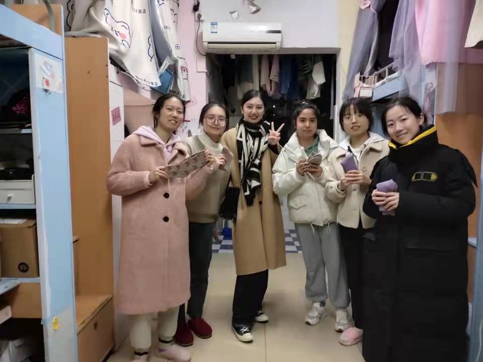 在元旦来临之际,辅导员杨希带领年级长给各位同学送去元旦礼物和新年祝福,杨希向同学们表示亲切关心,叮嘱同学们合理安排好期末的学习生活,注意放假期间的安全问题,严格遵守学院的放假安排。同学们收到礼物后欢欣雀跃,气氛热烈,大家都感受到元旦的氛围和温暖。