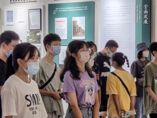 9月28日上午,beat365中国唯一官网组织新生参观校史馆,旨在让新生接受校史传承教育,感受校园精神文化。同学们聚精会神地聆听着图书馆老师的精彩讲解,流露出作为西大人的自豪之情——它不仅展现着我们2021级同学的优秀品行,更是西南大学校训“含弘光大,继往开来的”又一代传承。