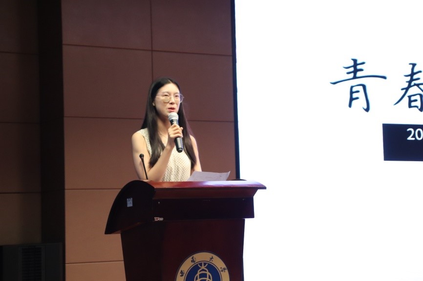 晚会伊始,夏老师上台讲话。夏老师表示,恰逢中秋佳节,在这个特殊的节日里,首先祝同学们中秋快乐。紧接着,她强调“食品科学学院团委学生会是一个优秀的集体,希望同学们能够踊跃报名,勇于在活动中展现自己的风采。”随后,第十七届团委及学生会团委副书记周宏上台寄语新生。周宏谈到,大学是一个提升自己,完善自我的平台,希望各位同学抓紧机会,不要松懈,努力学习,在四年时光里成就最好的自己。