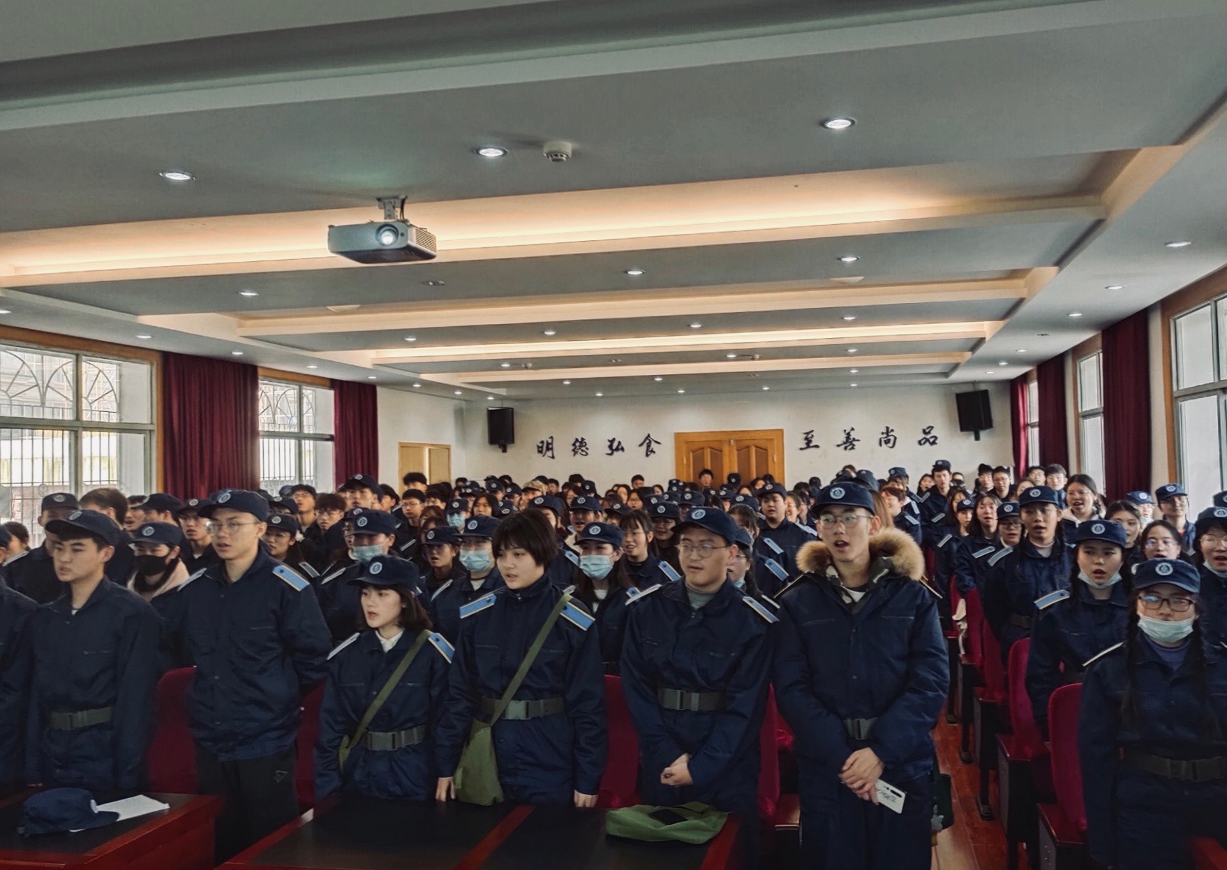 军训期间,为引导学员们坚定理想信念,坚强意志品格,在辅导员带领下,同学们开展了2020级军事训练线上学习活动。集中观看了军事题材电影《金刚川》及征兵宣传片《参军报国 不负韶华》。通过影片感受到中国人民坚韧不屈、奋斗前行的精神,为同学们军事训练打下坚实的基础。
