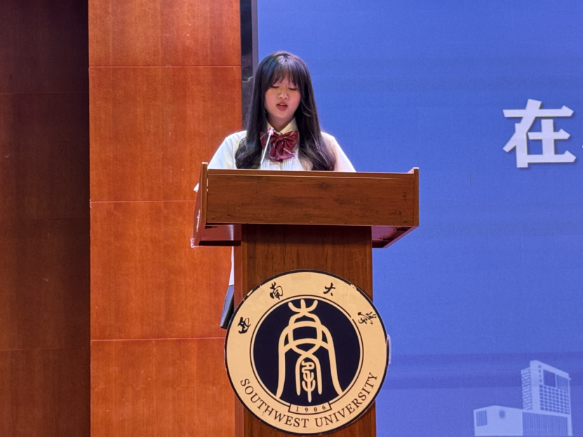 伴随着全场师生齐唱《西南大学校歌》,2024级新生见面会就此圆满结束。本次新生见面会成功举办使新生进一步了解学校与学院,增进了师生之间的距离。希望新生秉持着“明德弘食,至善尚品”的学院院训,在学院的引领下扬帆起航,追逐梦想!