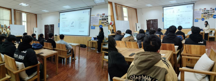 随后,邓煜、虎梦吉、谢雨琳分别分享了各自的考研复试及调剂经验。邓煜为同学们讲解了调剂流程、院校选择以及联系导师等方面的经验,并鼓励同学们积极争取调剂机会。虎梦吉则结合自身经历,分享了在实际复试中如何展现自身优势、应对导师提问的技巧,并强调了专业知识储备的重要性。谢雨琳则重点分享了面试流程和面试技巧,并推荐了实用的学习资料和网站。