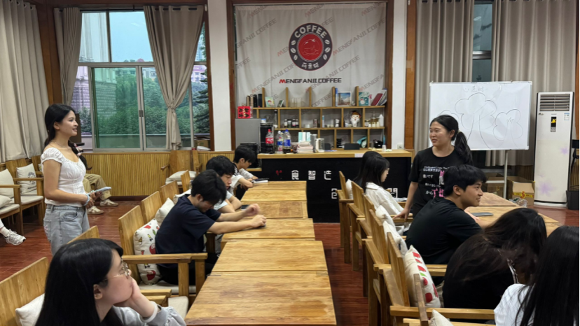 在经验分享环节,两位同学依次分享高分秘诀,倾囊相授备考“干货”。丁雨萌同学详细讲解了如何制定科学合理的备考计划。她建议将备考周期划分为基础夯实、专项突破和模拟冲刺三个阶段,并合理分配每日学习时间,同时在词汇积累方面,她分享了自己的“碎片化学习法”。