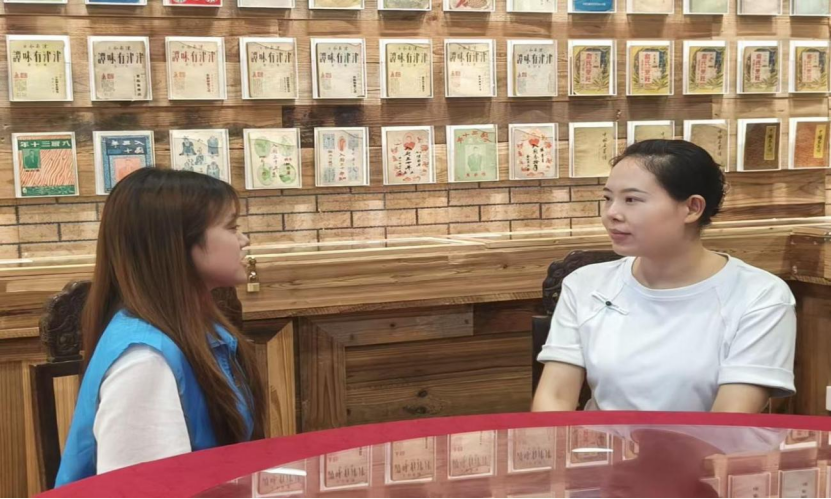 图为团队成员对兼善三绝传承人汪玉洁师傅进行采访