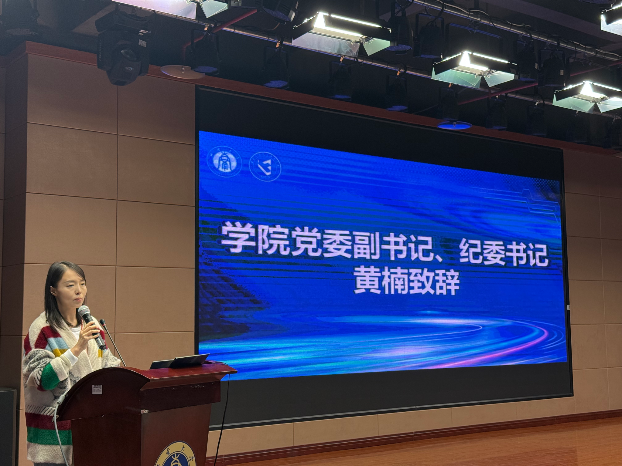 大会在庄严的国歌声中拉开帷幕。作为学院2026届毕业生中首位成功签约的学生代表,李国帅同学结合自身学习与求职准备经历,分享了心得体会,鼓励同学们立足专业、主动探索,以积极心态迎接就业挑战。随后,黄楠副书记发表致辞,她从解读国家实施就业优先战略、高质量充分就业背景,到深入分析食品行业发展趋势与就业现状引入,强调同学们应做好自我定位,打造个人“核心价值包”,持续加强专业技能与综合素质的锤炼,确定目标和实施路径。她特别指出,考研升学是学术深造与竞争力升级的黄金通道,是个人长远发展的基础支撑,鼓励已报名考研的26届本科生积极备战、一鼓作气,顺利上岸。