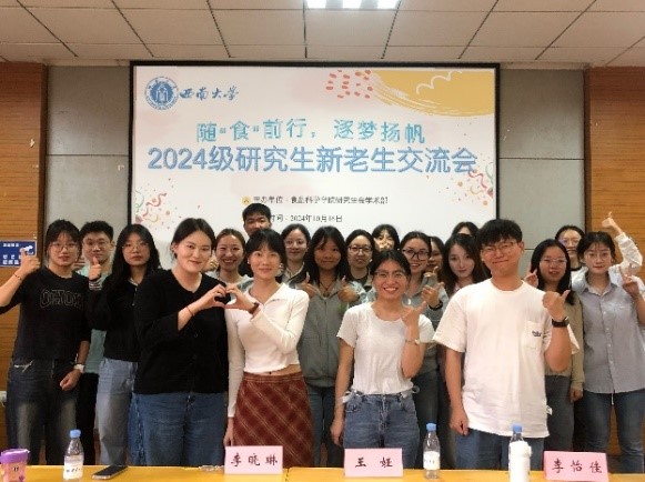 为帮助2024级新生加快角色转变,打破信息壁垒,解决新环境所带来的困扰,同时充分发挥优秀研究生朋辈榜样示范作用,食品科学学院研究生会于10月16日14:30在39教312组织开展了主题为“随‘食’前行,逐梦扬帆”的研究生新老生交流活动。