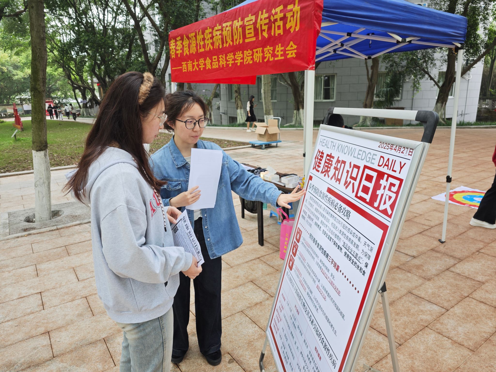 “预防为先,健康为本”,为弘扬健康饮食理念,增强西大学子对食源性疾病的重视度,进一步提升全校师生对食品安全的认知和防范意识。2025年4月27日,beat365中国唯一官网研究生会在南区樟树林开展了主题为“春安‘食’刻”的春季食源性疾病预防宣传活动。