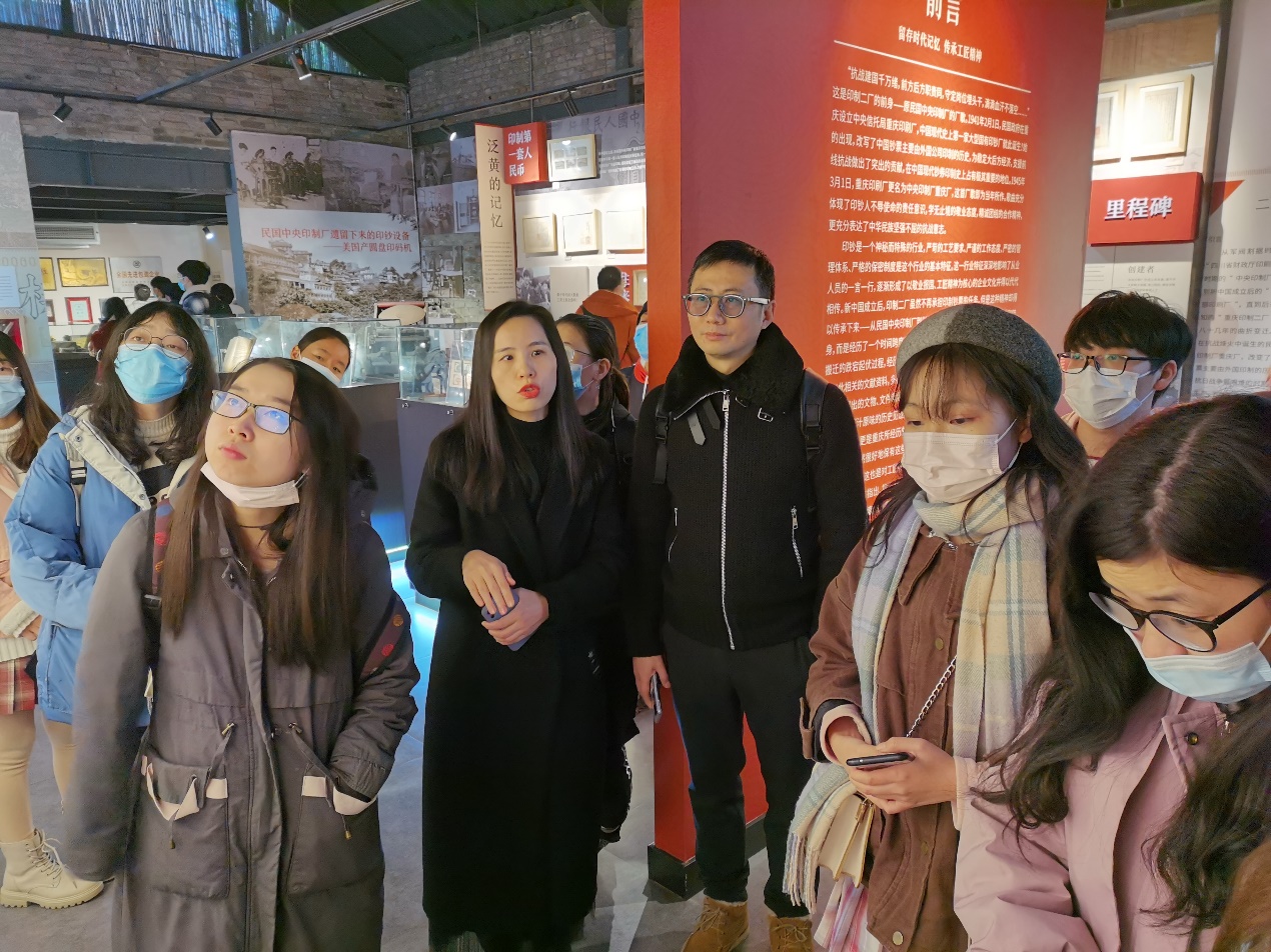 结合2019包装工程专业《整体包装品鉴与分析》课程实践环节的要求,在院、系两级领导支持下,2020年12月25日该课任课教师张雄、专业教师黎盛、王洪霞、班主任阮长睛老师率领2019包装工程1、2班40名同学参访了重庆现代化程度最高,规模最大的宏劲印务有限公司,享誉全国的重庆二厂文创产业园区,中国乃至于世界最大的互联网设计创业平台猪八戒网三家企业。