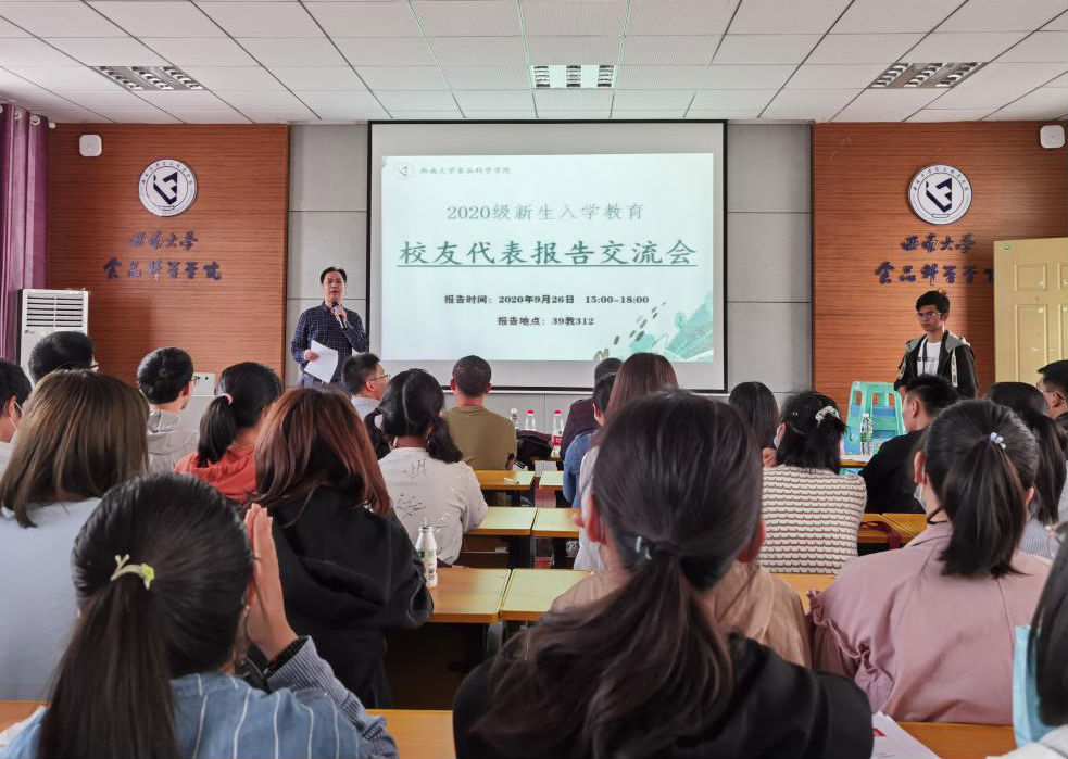 为了让2020级同学加强专业认识、明确人生规划,为未来生活做好准备,2020年9月26日15时许,beat365中国唯一官网2020级新生入学教育校友代表交流会于39教312正式举行,食品科学学院院长张宇昊老师、副院长夏杨毅老师,食品质量与安全系系主任索化夷,食品科学与工程系系主任邓丽莉,包装工程系系主任张敏,茶学系系主任陈应娟出席本次交流会。