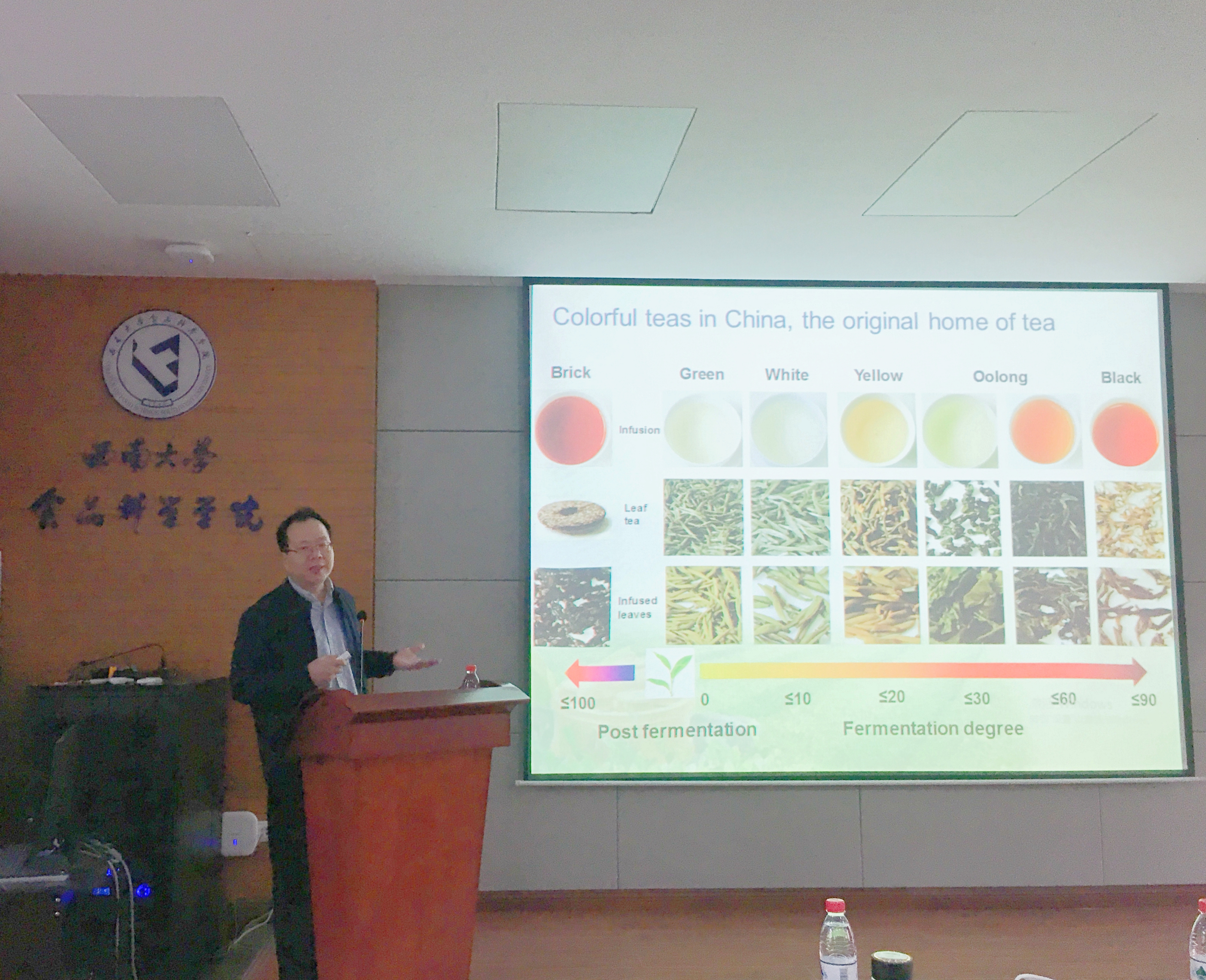 10月11日下午,中国农业科学院茶叶研究所副所长、研究员、博士生导师阮建云应邀做客beat365中国唯一官网,并在39教215学术报告厅作题为“‘十二五’以来茶叶科技进展与未来展望”的专题报告。本次讲座由食品科学学院院长赵国华教授主持,茶学系主任曾亮教授出席,学院众多师生到场聆听。
