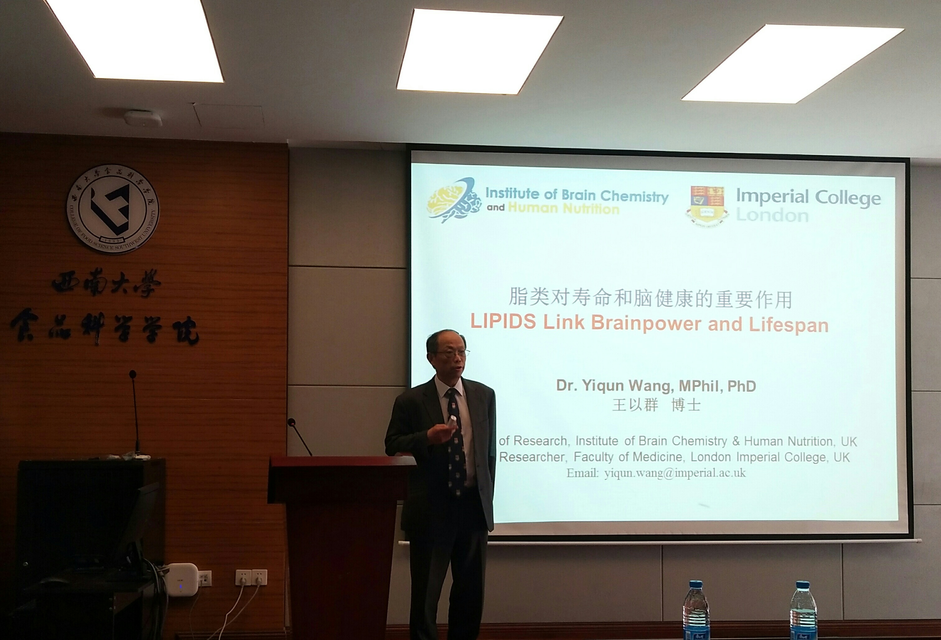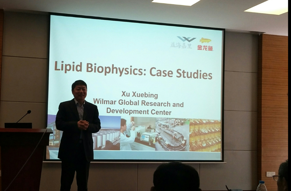 4月18日下午,从事脂类营养与健康及慢性疾病研究的王以群教授和益海嘉里集团研发中心总监徐学兵教授,在beat365中国唯一官网39教学术报告厅,分别作题为“LIPIDS Link Brainpower and Lifespan”和“Lipid Biophysics:Case Studies”的专题学术报告。本次报告会由食品科学学院副院长张宇昊教授主持,众多骨干教师和研究生代表到场聆听。