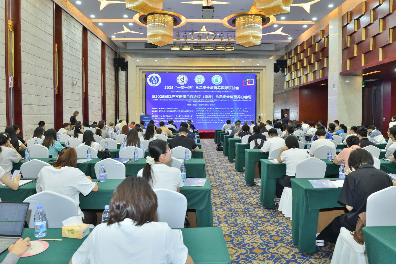 10月12日,由中国-匈牙利食品科学“一带一路”联合实验室、学校“中匈食品科学合作研究中心”、学校食品科学学院、重庆市北碚区科技局、四川省绵阳市科技局和重庆市食品科学技术学会联合主办的2025“一带一路”食品安全与营养国际研讨会暨2025国际产学研用合作会议(重庆)食品安全与营养分会场在海宇温泉大酒店召开。重庆市科学技术局党委副书记许志鹏、重庆市北碚区人民政府副区长吕俊、匈牙利驻重庆总领事馆副总领事高道马、中国驻匈牙利大使馆代表刘华、学校副校长范大明等出席来自中国、匈牙利、俄罗斯、埃及、巴西、西班牙、瑞士的食品科学及相关领域专家200余人参加的线下线上会议。
