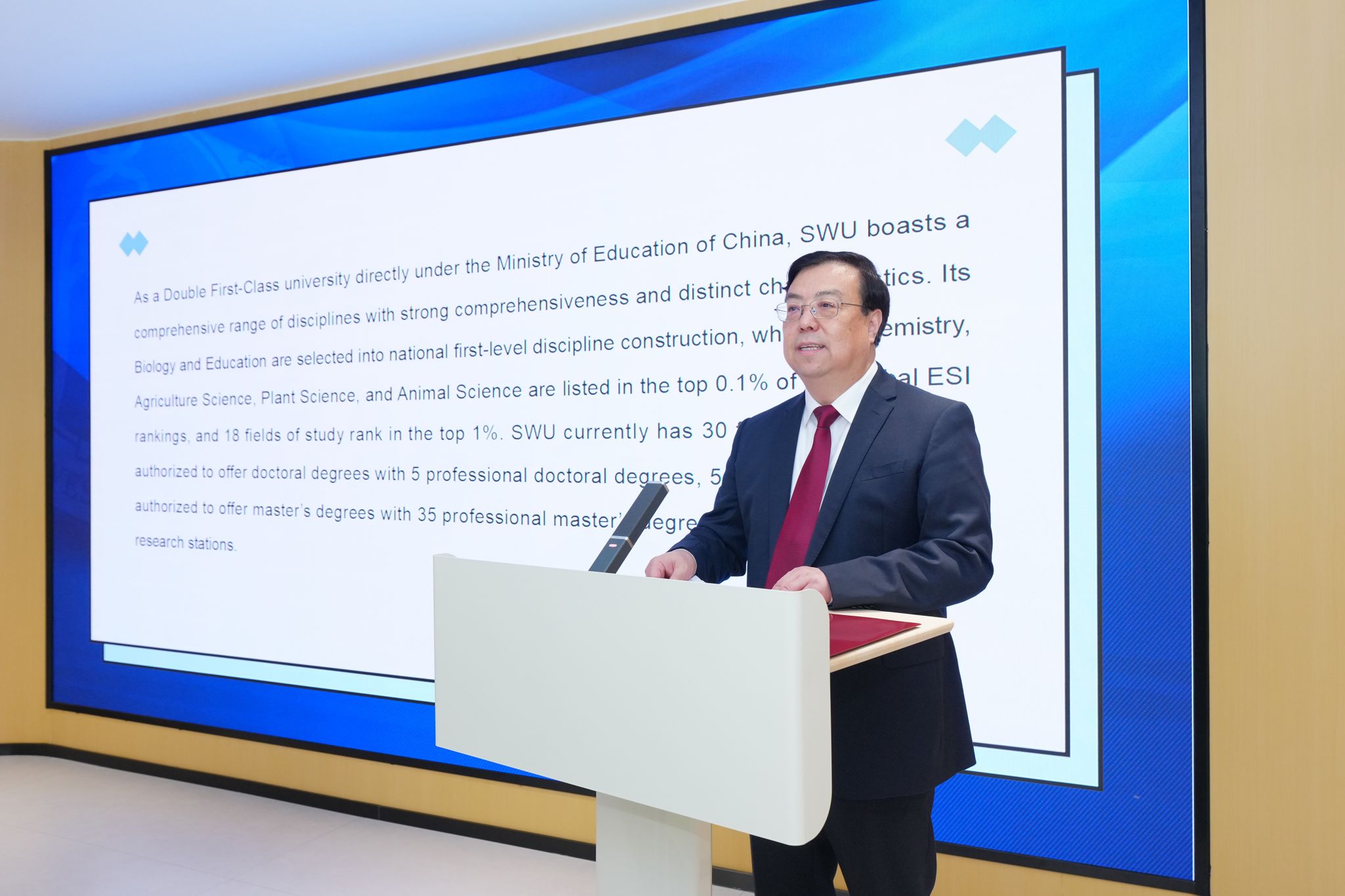 王进军在致辞中向远道而来的匈牙利嘉宾表示欢迎。他谈到,西南大学与匈牙利农业与生命科学大学合作建设的联合实验室,已成为中匈高校在食品科技领域合作的典范。学校将持续依托这一优势平台,致力于将其打造为“中匈食品科技协同创新枢纽”。