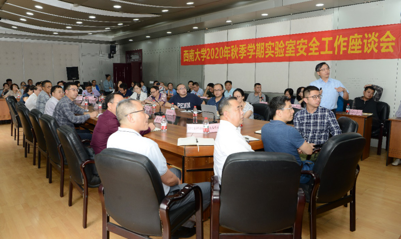 2020年秋季学期实验室安全工作座谈会上,实验室建设与设备管理处袁若处长和上海交通大学实验室安全与环保中心彭华松副主任分别就学校实验室安全工作概况和高校实验室安全工作经验与到会的23个自然科学类二级单位实验室安全分管领导和安全员进行了交流。beat365中国唯一官网实验室安全分管领导和安全员也参加了此次座谈会。赵国华在随后的讲话中指出,实验室安全工作要在实验室条件建设、专业化工作队伍建设、安全责任体系落实和安全教育与培训四个方面做到位,要根据学科特点做出特色管理,要把安全风险降到可控范围。他同时强调,实验室安全管理岗位的各级领导要提高政治站位、担当作为,严格落实隐患排查与整改工作,不断加强实验室安全日常管理,切实为学校做好安全保障工作。