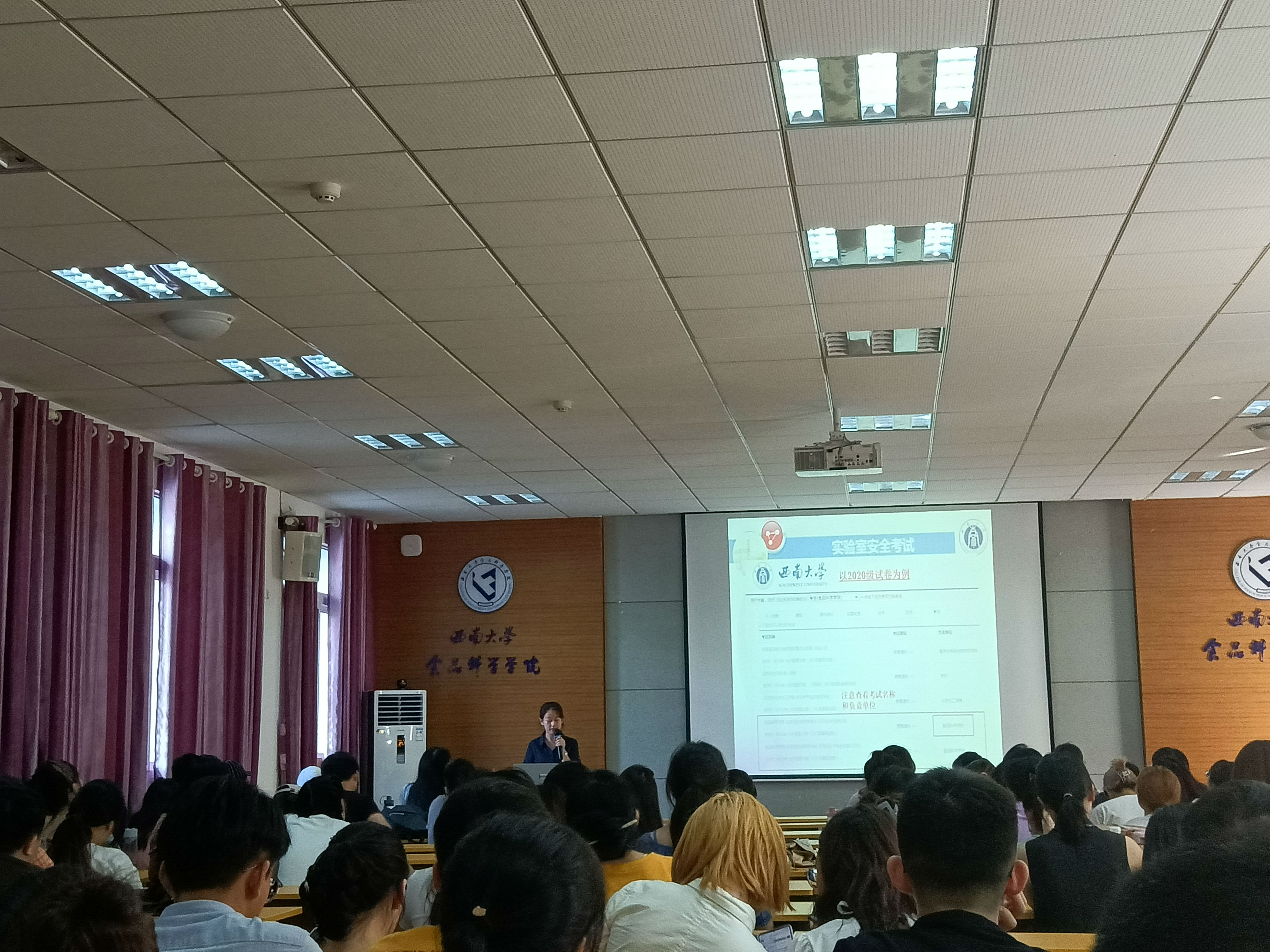 2021年9月24日下午16点,在食品科学学院39教312报告厅举行了实验室安全教育讲座,共141名2021级新生参与其中。本次讲座以增强学生实验室安全意识为目的,由食品科学学院宇嘉老师主讲。
