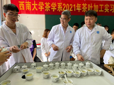 2021年4月30日,西南大学茶学系第二届实习总结大会暨手工茶评比大赛在食品科学学院茶叶审评实验室举行,来自2017级、2018级茶学专业的48名同学,共制作参评绿茶52种、红茶6种、乌龙茶4种、白茶、黑茶、黄茶各1种。