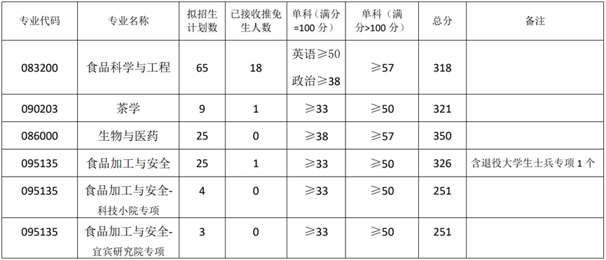 1.根据《西南大学2023年硕士研究生招生复试录取工作办法》的要求,食品科学学院考生进入复试的初试成绩基本要求如下: