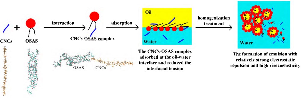 图5 纤维素纳米晶-淀粉酯复合物制备乳化液的形成与稳定示意图