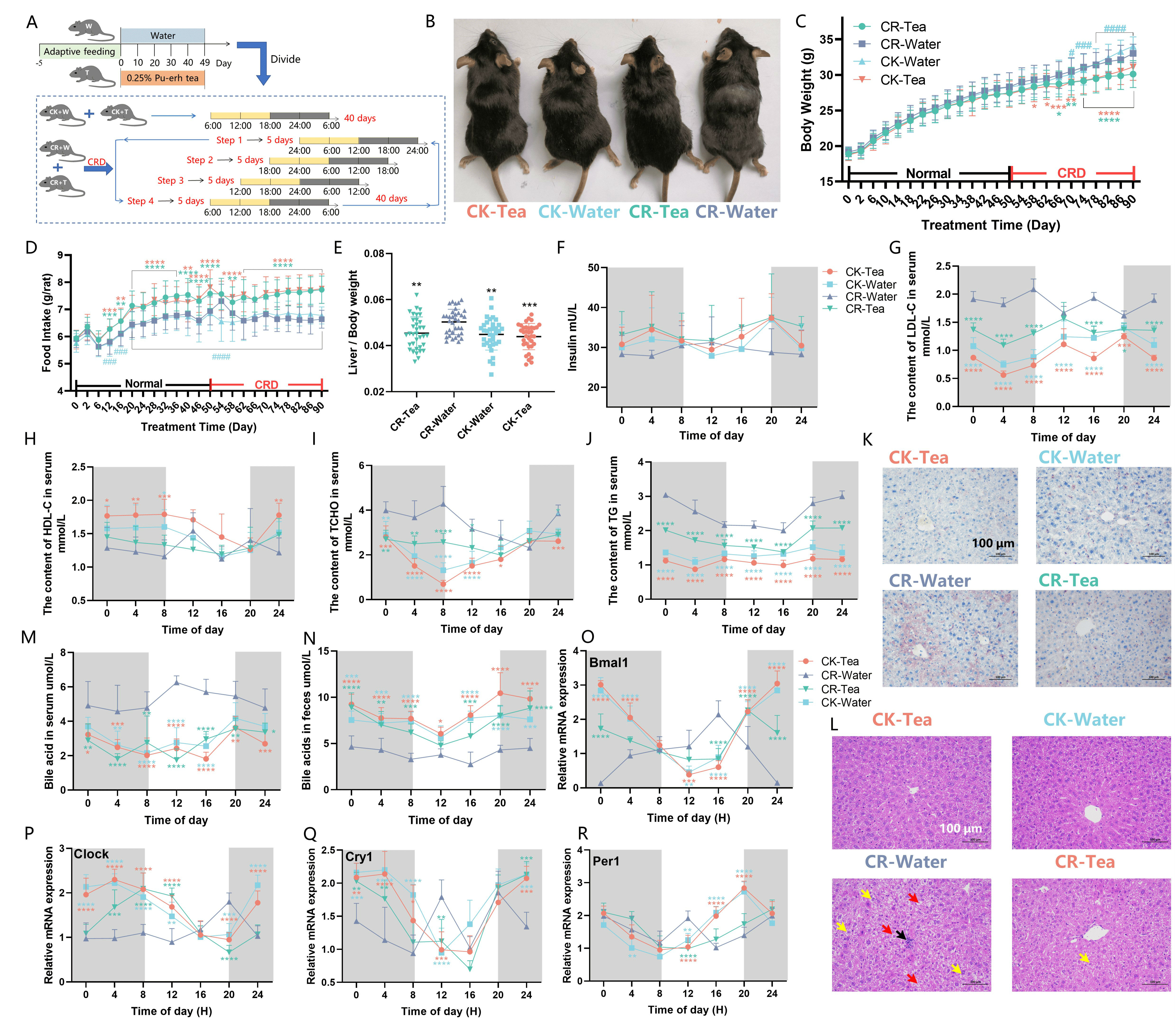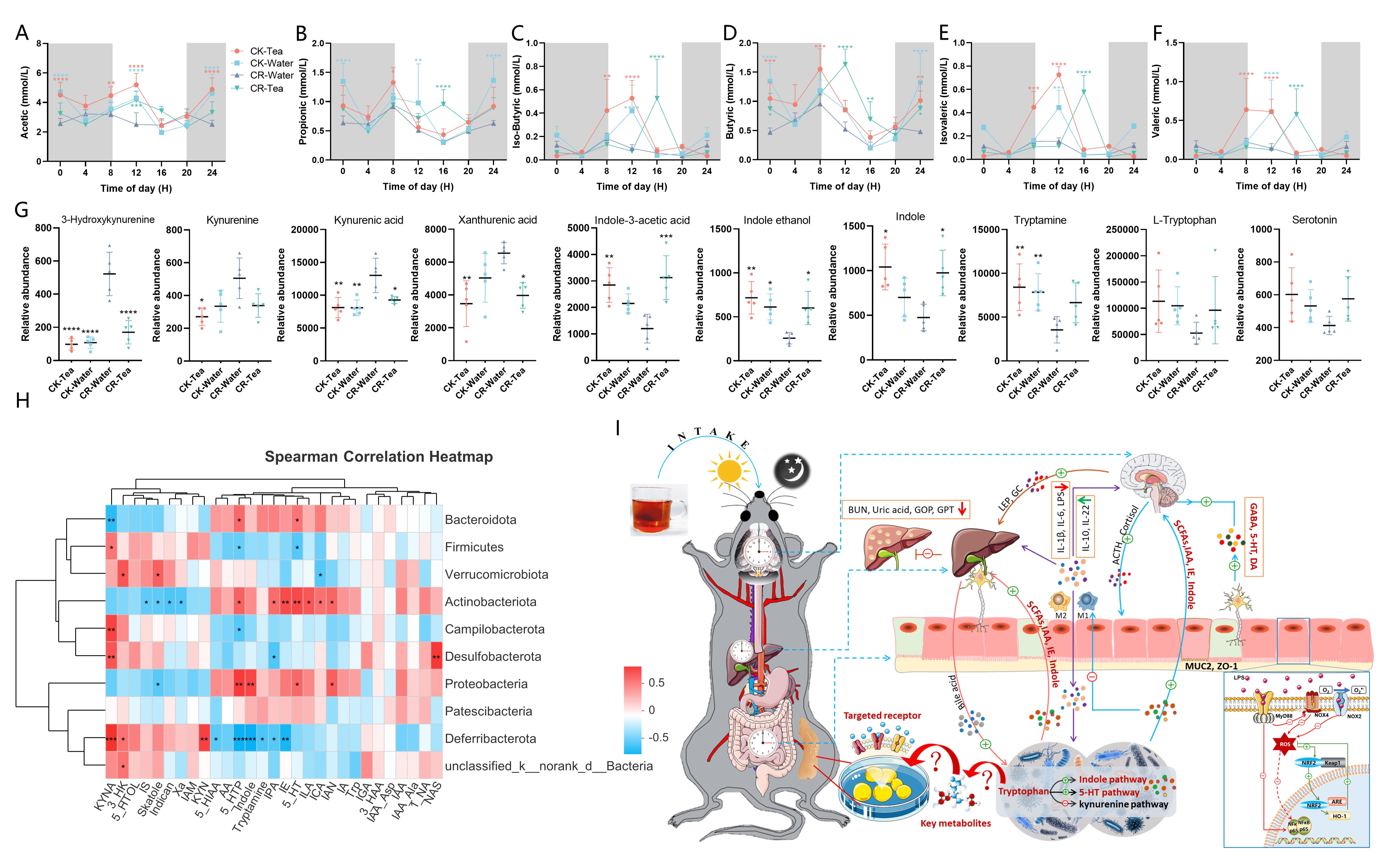色氨酸代谢在神经退行性疾病、代谢性疾病和自身免疫性疾病中具有潜力,并且色氨酸代谢物也具有昼夜节律。然而,色氨酸代谢是否为CRD诱导的代谢紊乱综合征的驱动因素之一尚不清楚。因此,本文重点关注了色氨酸代谢在CRD中的潜在作用,并探究普洱茶是否可以通过调节色氨酸代谢,以维系机体代谢平衡和炎症水平。