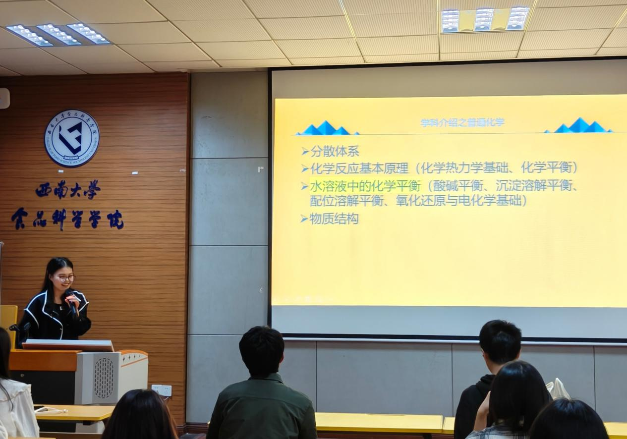为增加学院学生的学习热情,掌握正确的学习方法,解决同学们在普通化学、有机化学方面的疑惑,2023年11月5日,“食”佳学霸学业加油站——大一普通化学、有机化学专场在39教312顺利举办。本次活动特邀2022级本科生卢晓林、吴玉、刘美鑫三位同学分享学习经验,食品科学学院大一学生参加学习。