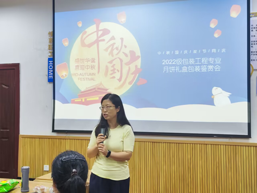 为全面提高包装工程专业的学生对食品包装的品鉴能力,同时增强学生的交流能力与团队协作能力。2023年9月27日晚上七点,beat365中国唯一官网2022级包装工程专业月饼礼盒赏鉴会于线下拉开序幕。本次活动在39教创客空间举行,由22级包装一班班长苏提森主持。出席本次活动的成员有包装工程系徐丹主任,班主任黎盛和任丹老师,以及2022级包装工程专业全体学生。