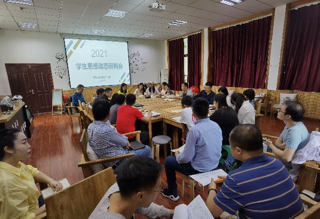 在学生思想动态研判主题中,刘秋艳副书记带领辅导员及班主任对有学业警示或心理异常的学生进行了逐一研判,并要求辅导员与班主任定期展开一对一谈心谈话,密切了解学生思想动态,建立一生一策,同时强调了加强学生诚信考试、防溺水防诈骗安全等问题;在学生意识形态研判主题中,刘书记重点强调了学生网络平台的管理及运营,严格把关学生网络平台的意识形态问题,并要求各年级各班多角度多方面做好学生思想政治教育工作,引导学生正确运用网络平台;此外,刘书记进行了班主任工作专题培训,向各位班主任传授了学生工作基本方法,告知班主任应了解自己班级学生的基本情况,精准关注重点学生,建立强有力的班级干部队伍,提高工作效率,规范班级管理,严格班级纪律,耐心细致的关爱学生,同时公平公正公开开展班级事务,并积极融入班级活动拉近与学生的距离。