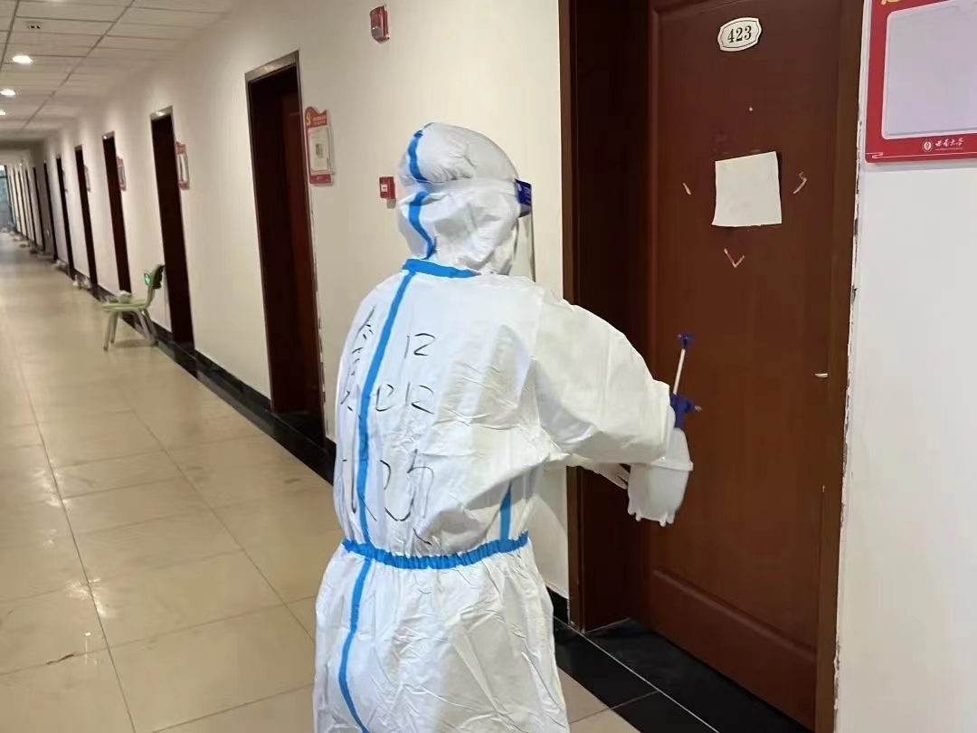 网格管理,深入楼栋。4名辅导员在关键时刻,驻扎封控楼栋,化身“大白”,在点对点敲门做核酸、发核酸抗原中忙碌;化身“外卖员”,在抬餐爬楼送物资中大汗淋漓;化身“心理咨询师”,缓解孩子们的焦虑、恐慌、不安、无助等不良情绪反应,打赢抗击疫情战斗中的“心理病毒”。