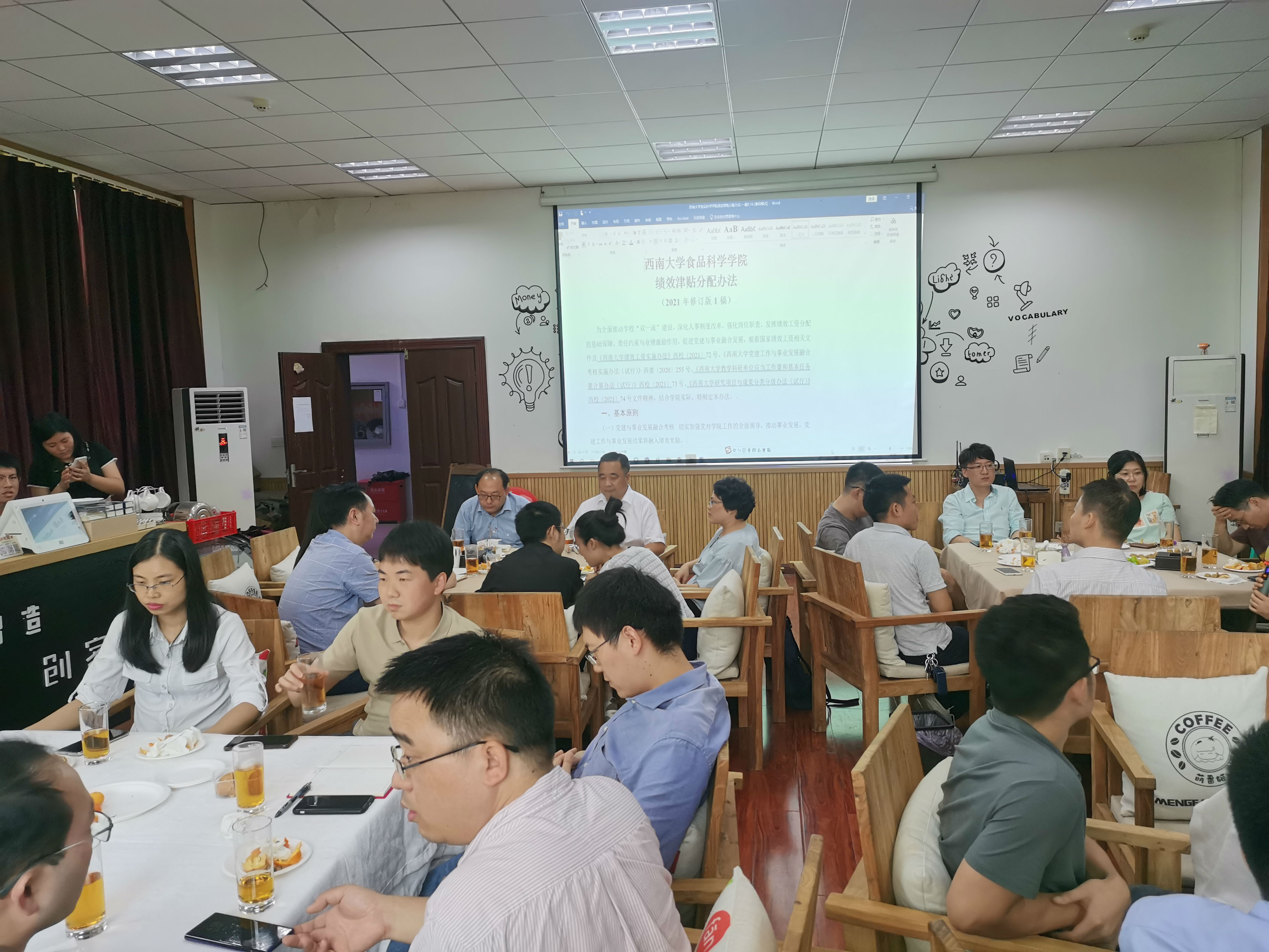 最后,学院党委书记吴俊平向各位青年教师代表积极建言献策表示感谢,祝愿青年教师在学院中能够有更好的发展。吴俊平书记在会上向青年教师详细说明了学院教师绩效考核方案,阐明最新的绩效考核方案是青年教师快速成长的保障!