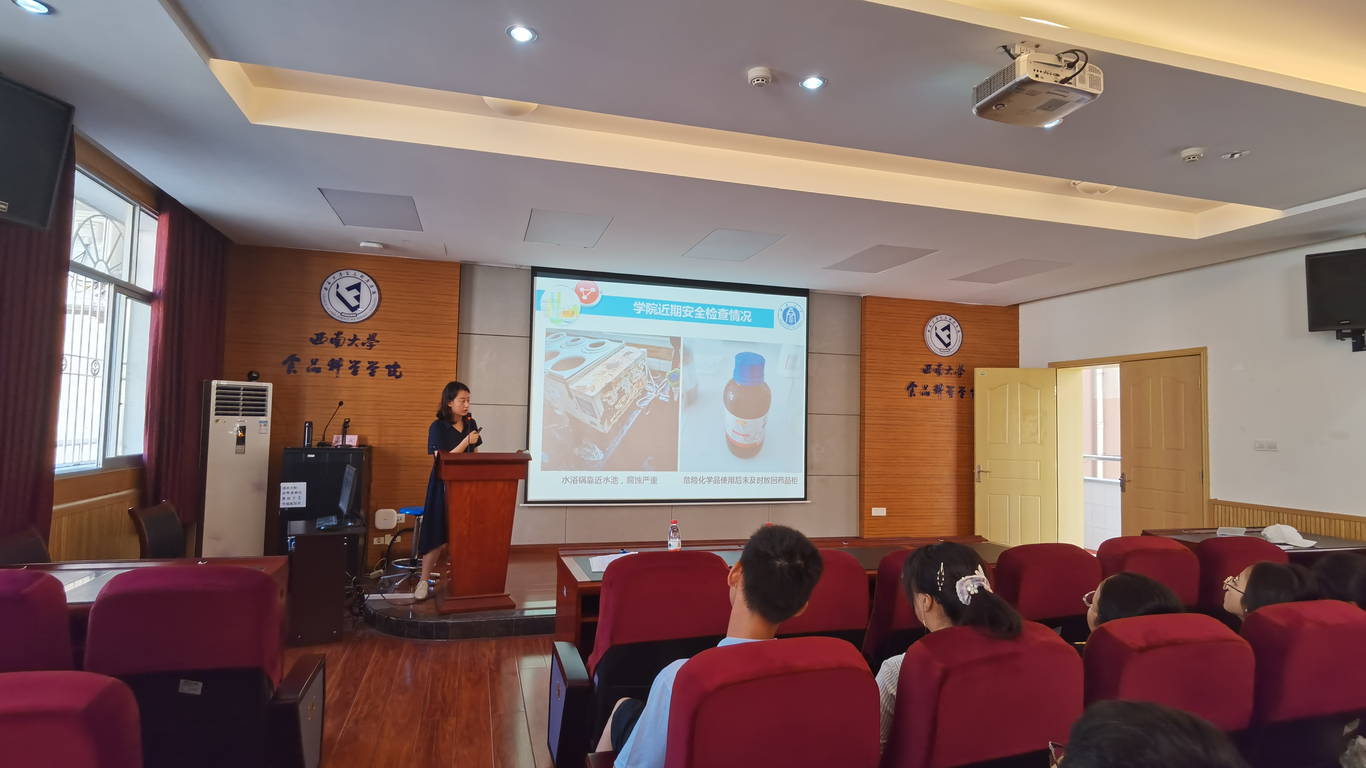 2021年9月30日上午,食品科学学院在39教312会议室、39教215会议室举办了2021届本科生新生实验室安全教育讲座,本次讲座由学院宇嘉老师主讲,食品科学与工程类、包装专业的231名2021级本科生新生共同参与。